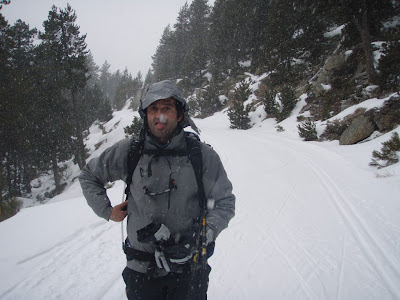 Desde aquí hay dos opciones para subir, una por la pista y la otra en línea recta, nosotros decidimos subir en línea recta, abriendo traza por la nieve virgen, unos 400m antes de llegar al refugio la cosa se empina bastante y con la cantidad de nieve que había, acabamos bastante cansados, nos fuimos turnando para abrir traza.